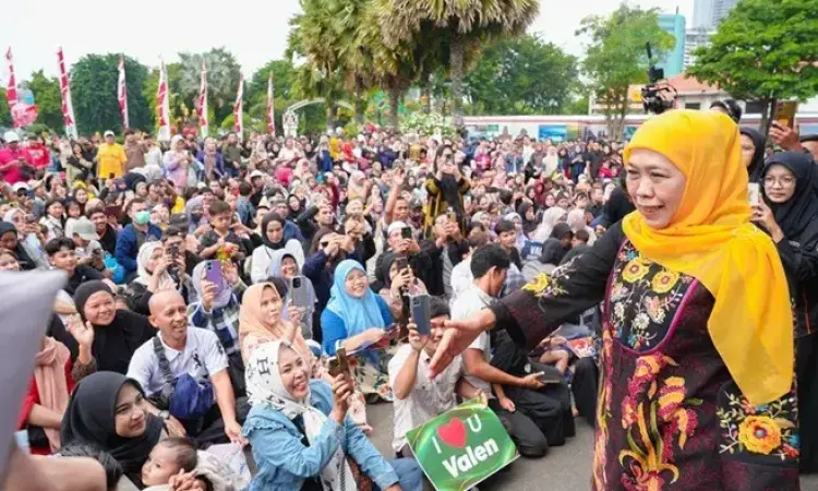 Di hadapan Valen dan para penggemarnya, Khofifah berpesan agar Valen tetap menghormati orang tua serta menjaga kesantunan dan kesholehan yang menjadi ciri khas masyarakat Jawa Timur.